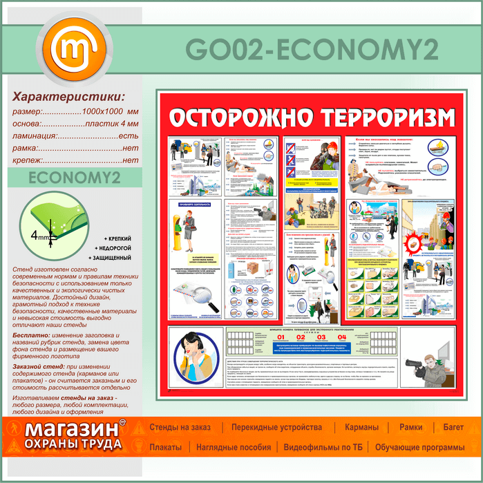 Стенд «Осторожно терроризм!» (GO-02-ECONOMY2) в Верее купить