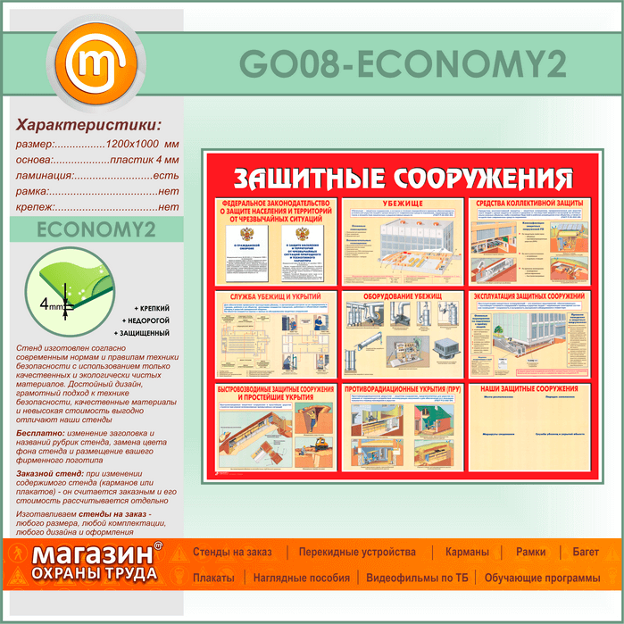Стенд «Защитные сооружения» (GO-08-ECONOMY2) в Верее купить