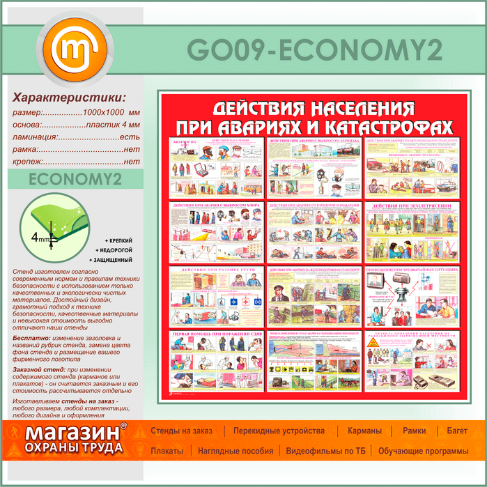 Стенд «Действия населения при авариях и катастрофах» (GO-09-ECONOMY2) в Верее купить
