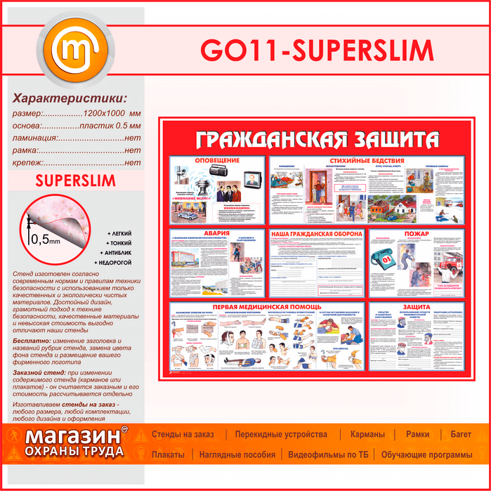 Стенд «Гражданская защита» (GO-11-SUPERSLIM) в Верее купить