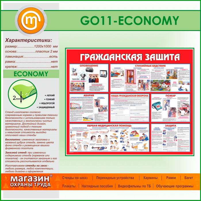 Стенд «Гражданская защита» (GO-11-ECONOMY) в Верее купить