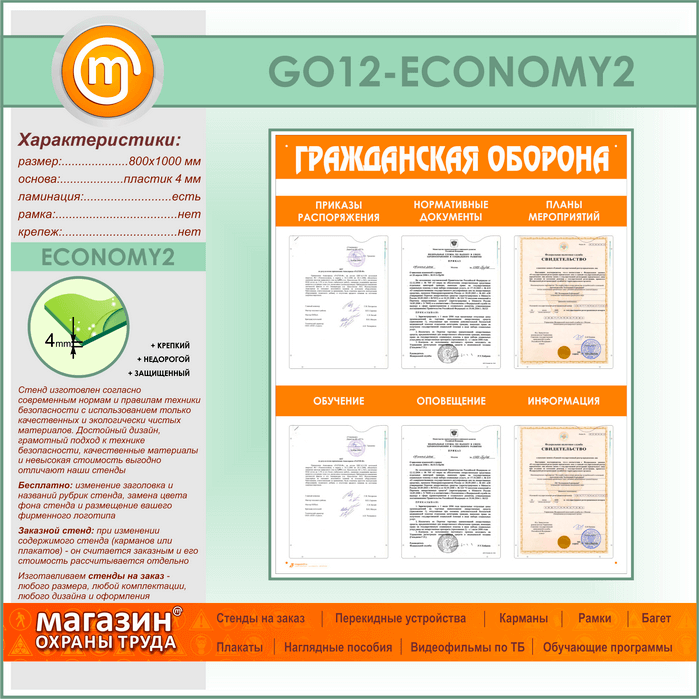 Стенд «Гражданская оборона» с 6 плоскими карманами (GO-12-ECONOMY2) в Верее купить