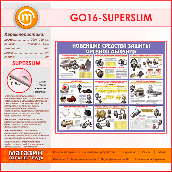 Стенд «Новейшие средства защиты органов дыхания» (GO-16-SUPERSLIM) в Верее купить