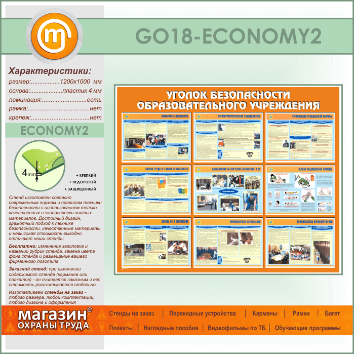 Стенд «Уголок безопасности образовательного учреждения» (GO-18-ECONOMY2) в Верее купить