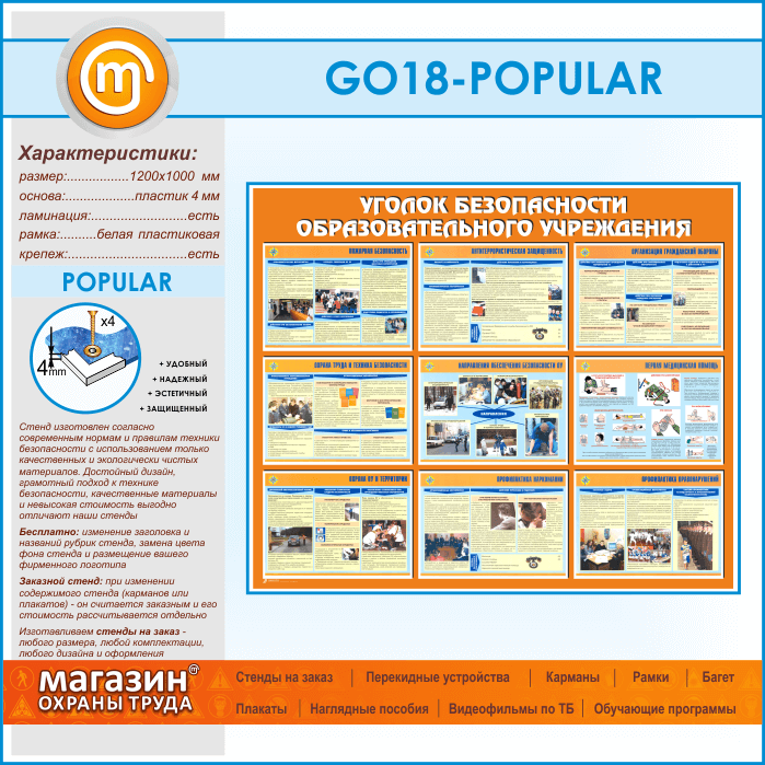 Стенд «Уголок безопасности образовательного учреждения» (GO-18-POPULAR) в Верее купить