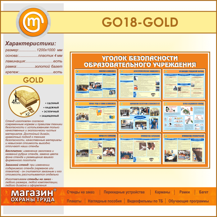 Стенд «Уголок безопасности образовательного учреждения» (GO-18-GOLD) в Верее купить