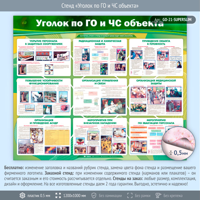 Стенд «Уголок по ГО и ЧС объекта» (GO-21-SUPERSLIM) в Верее купить