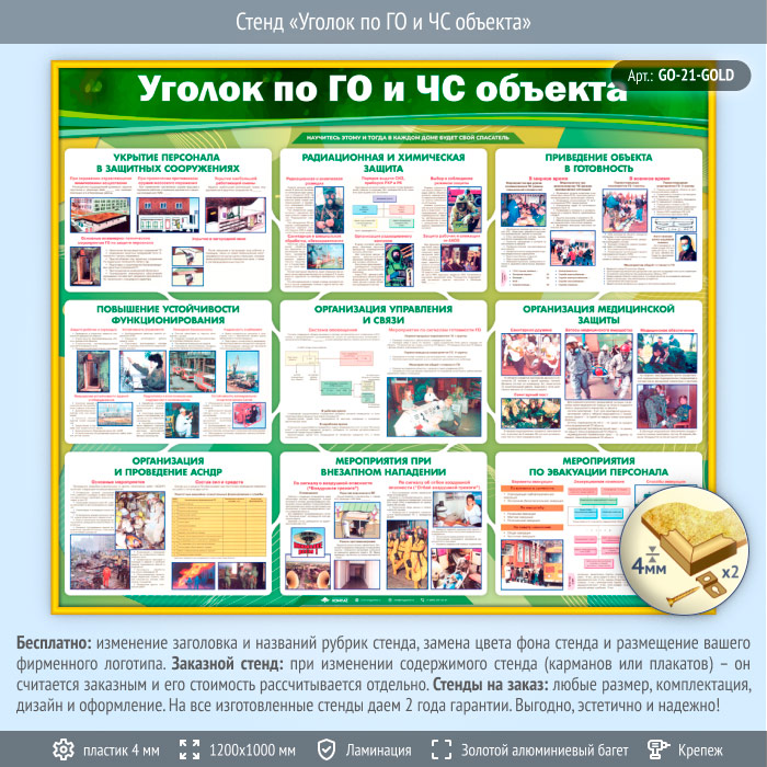 Стенд «Уголок по ГО и ЧС объекта» (GO-21-GOLD) в Верее купить