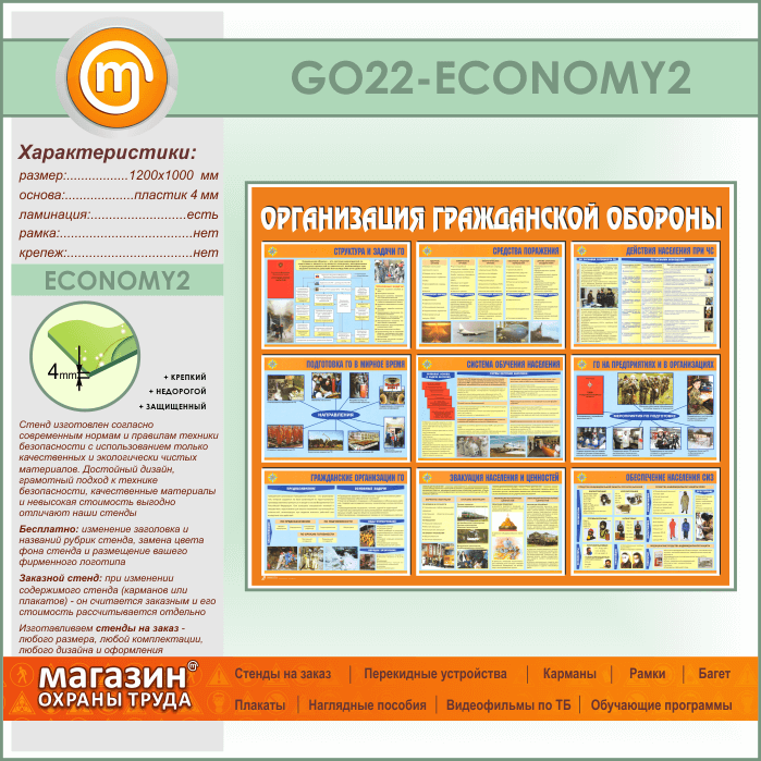 Стенд «Организация гражданской обороны» (GO-22-ECONOMY2) в Верее купить