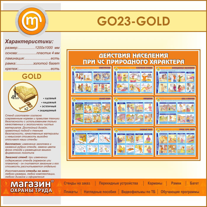 Стенд «Действия населения при ЧС природного характера» (GO-23-GOLD) в Верее купить
