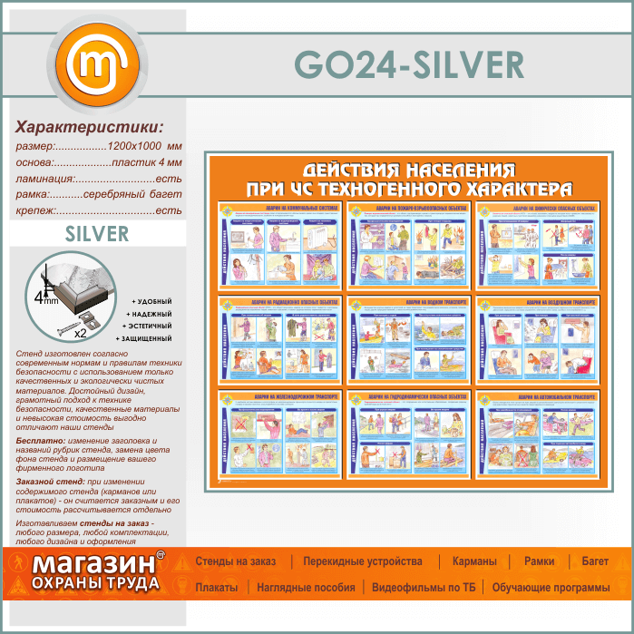 Стенд «Действия населения при ЧС техногенного характера» (GO-24-SILVER) в Верее купить