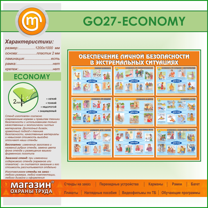 Стенд «Обеспечение личной безопасности в экстремальных ситуациях» (GO-27-ECONOMY) в Верее купить
