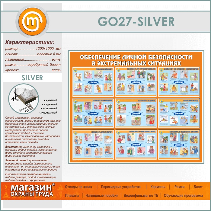 Стенд «Обеспечение личной безопасности в экстремальных ситуациях» (GO-27-SILVER) в Верее купить