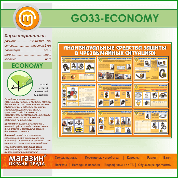 Стенд «Индивидуальные средства защиты в чрезвычайных ситуациях» (GO-33-ECONOMY) в Верее купить