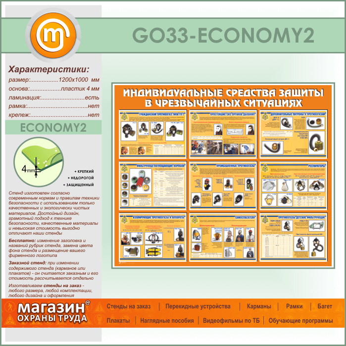 Стенд «Индивидуальные средства защиты в чрезвычайных ситуациях» (GO-33-ECONOMY2) в Верее купить