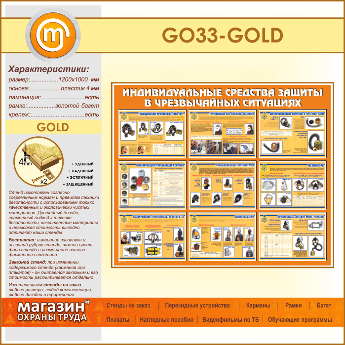 Стенд «Индивидуальные средства защиты в чрезвычайных ситуациях» (GO-33-GOLD) в Верее купить