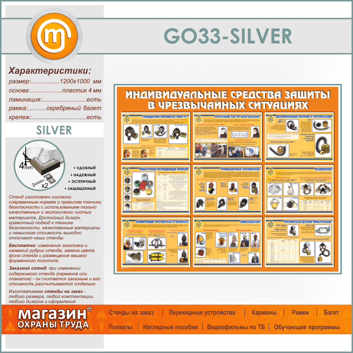 Стенд «Индивидуальные средства защиты в чрезвычайных ситуациях» (GO-33-SILVER) в Верее купить