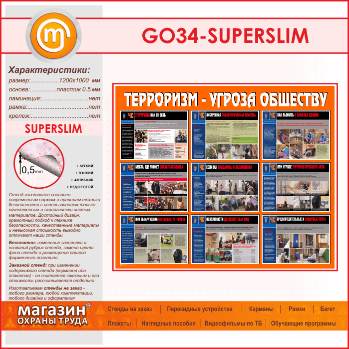 Стенд «Терроризм - угроза обществу» (GO-34-SUPERSLIM) в Верее купить