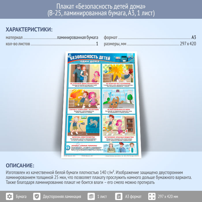 Плакат «Безопасность детей дома» (В-25, ламинированная бумага, А3, 1 лист) в Верее купить