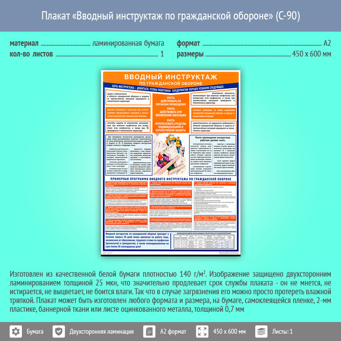 Плакат «Вводный инструктаж по гражданской обороне» (С-90, ламинированная бумага, А2, 1 лист) в Верее купить