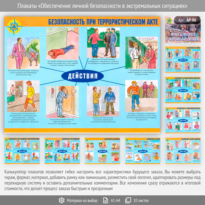 Плакаты «Обеспечение личной безопасности в экстремальных ситуациях» (АР-06, 10 листов) в Верее купить