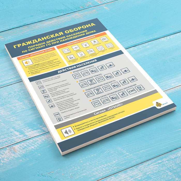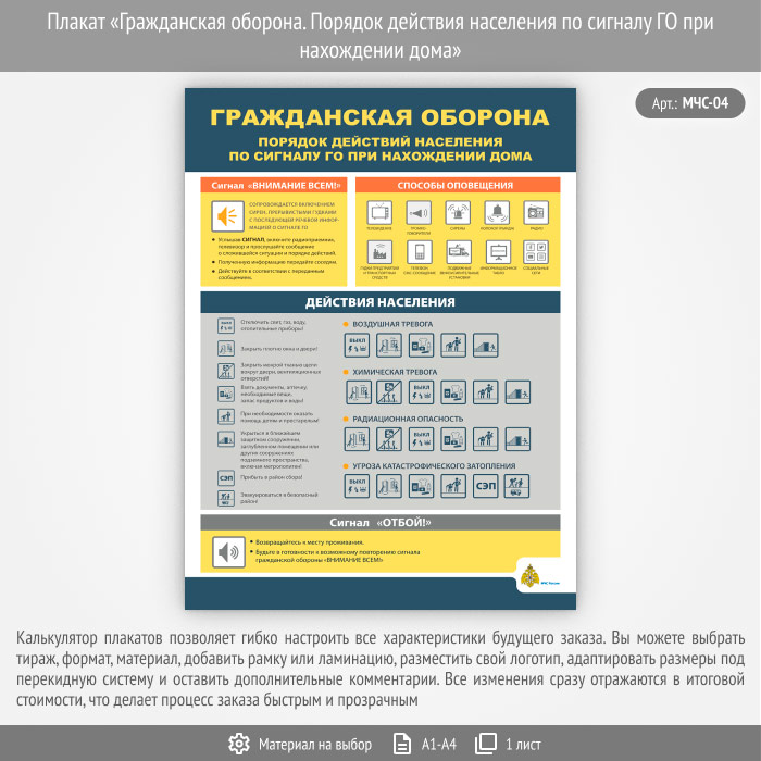 Плакат «Гражданская оборона. Порядок действия населения по сигналу ГО при нахождении дома» (МЧС-04, 1 лист) в Верее купить