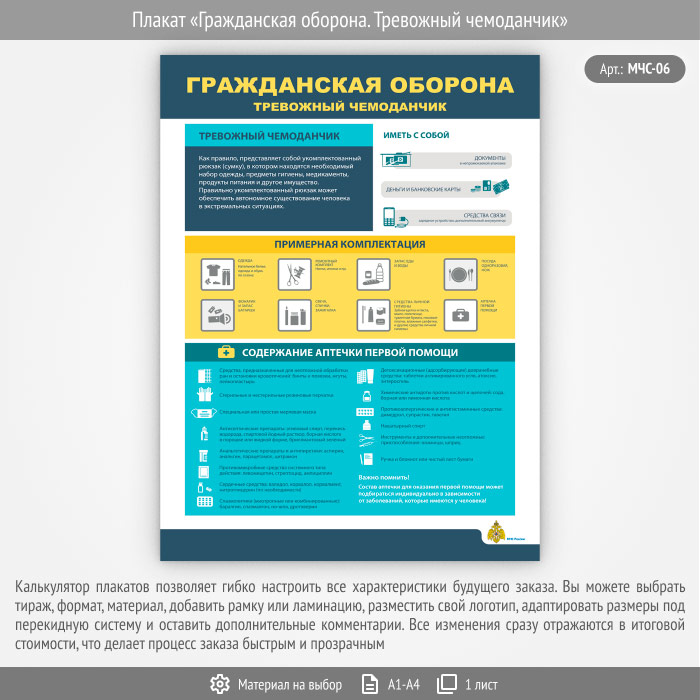 Плакат «Гражданская оборона. Тревожный чемоданчик» (МЧС-06, 1 лист) в Верее купить