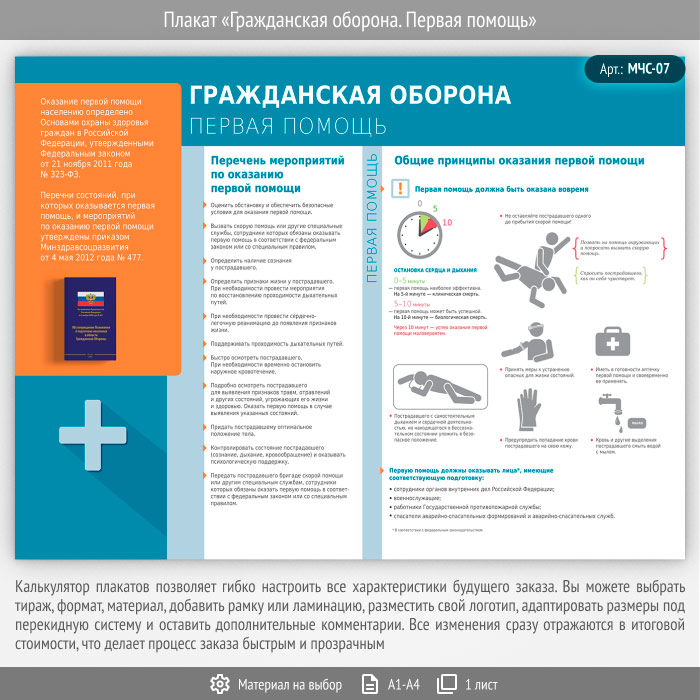 Плакат «Гражданская оборона. Первая помощь» (МЧС-07, 1 лист) в Верее купить