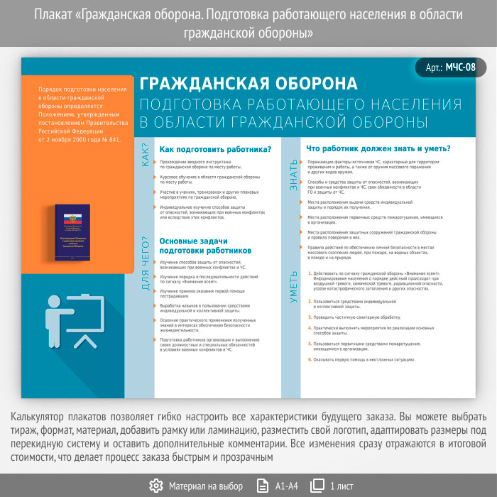 Плакат «Гражданская оборона. Подготовка работающего населения в области гражданской обороны» (МЧС-08, 1 лист) в Верее купить