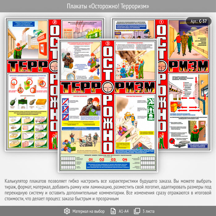 Плакаты «Осторожно! Терроризм» (С-37, 3 листа) в Верее купить