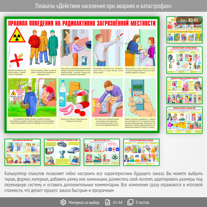Плакаты «Действия населения при авариях и катастрофах» (ВЗ-01, 9 листов) в Верее купить