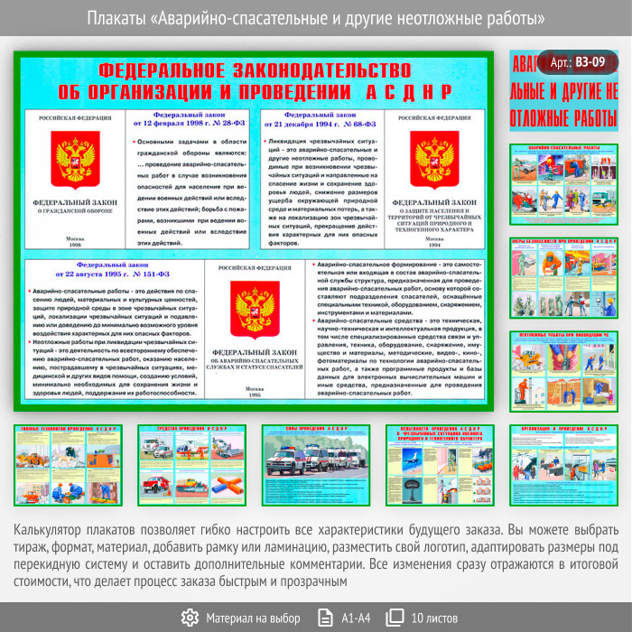 Плакаты «Аварийно-спасательные и другие неотложные работы» (ВЗ-09, 9 листов) в Верее купить