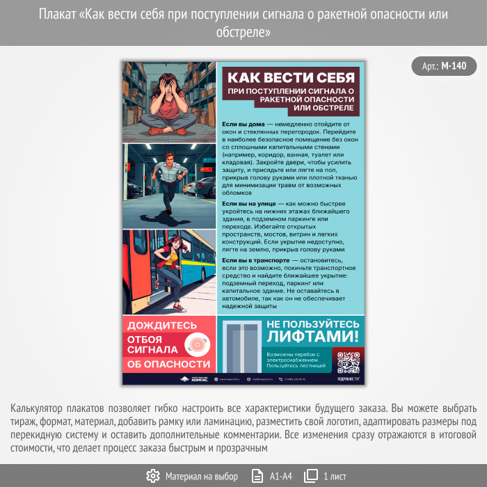 Плакат «Как вести себя при поступлении сигнала о ракетной опасности или обстреле» с QR (М-140, 1 лист) в Верее купить