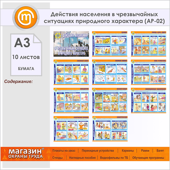 Плакаты «Действия населения в чрезвычайных ситуациях природного характера» (АР-02, бумага, А3, 10 листов) в Верее купить