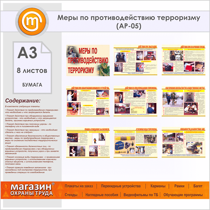 Плакаты «Меры по противодействию терроризму» (АР-05, бумага, А3, 8 листов) в Верее купить