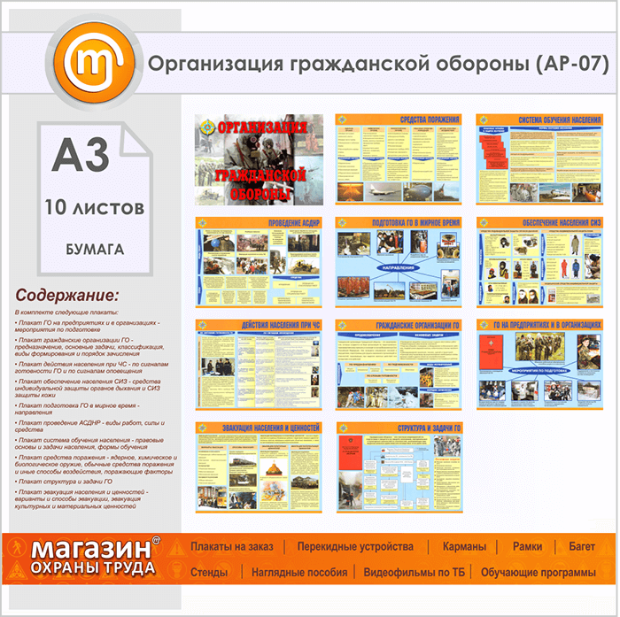 Плакаты «Организация гражданской обороны» (АР-07, бумага, А3, 10 листов) в Верее купить