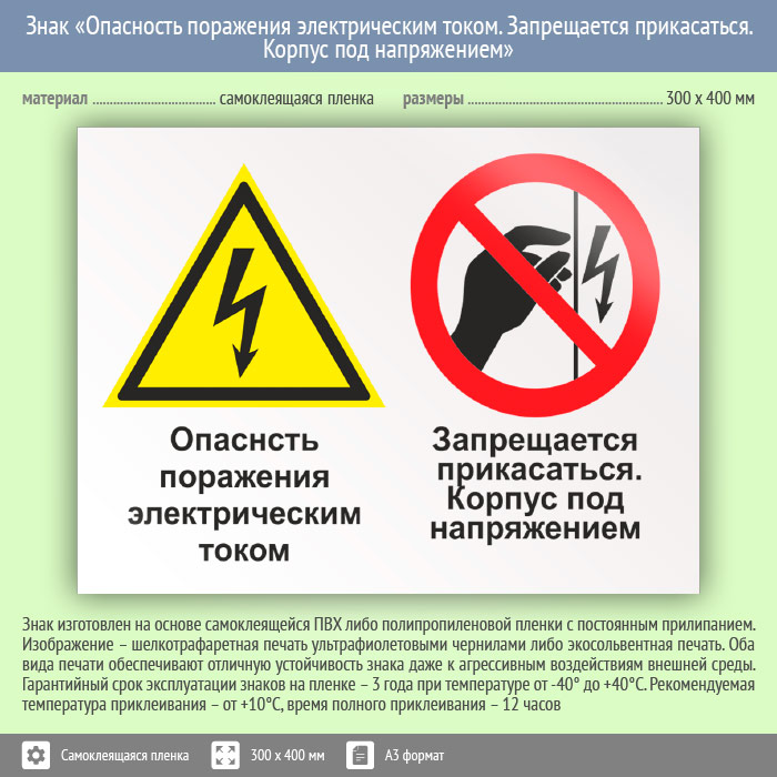 Знак «Опасность поражения электрическим током. Запрещается прикасаться. Корпус под напряжением», КЗ-47 (пленка, 400х300 мм) в Верее купить