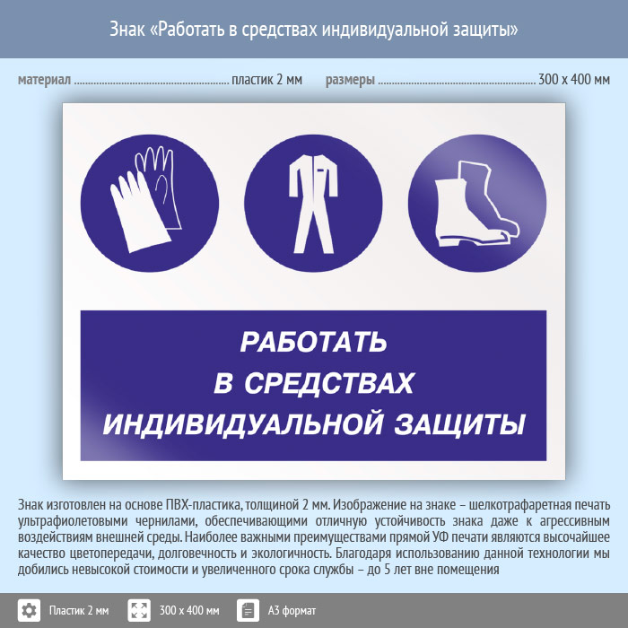 Знак «Работать в средствах индивидуальной защиты», КЗ-81 (пластик, 400х300 мм) в Верее купить