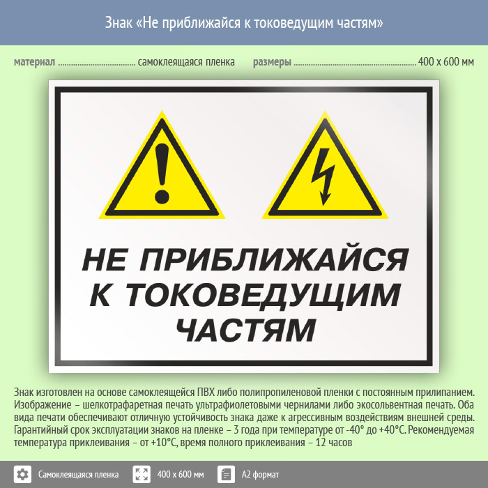 Знак «Не приближайся к токоведущим частям», КЗ-29 (пленка, 600х400 мм) в Верее купить