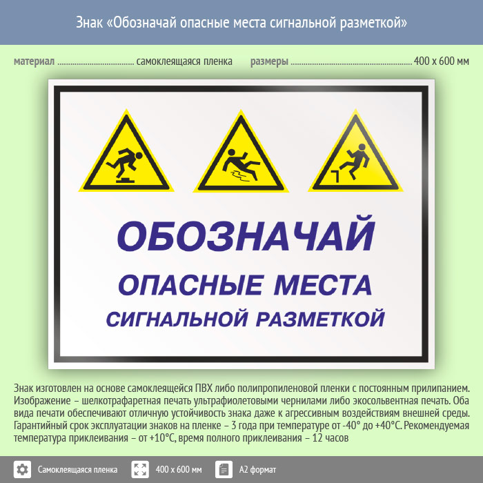 Знак «Обозначай опасные места сигнальной разметкой», КЗ-30 (пленка, 600х400 мм) в Верее купить