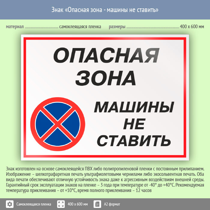 Знак «Опасная зона - машины не ставить», КЗ-32 (пленка, 600х400 мм) в Верее купить