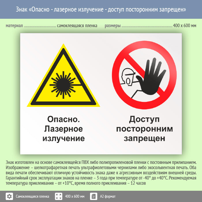 Знак «Опасно - лазерное излучение - доступ посторонним запрещен», КЗ-37 (пленка, 600х400 мм) в Верее купить