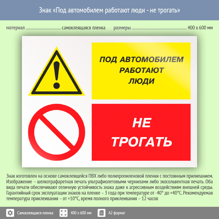 Знак «Под автомобилем работают люди - не трогать», КЗ-66 (пленка, 600х400 мм) в Верее купить