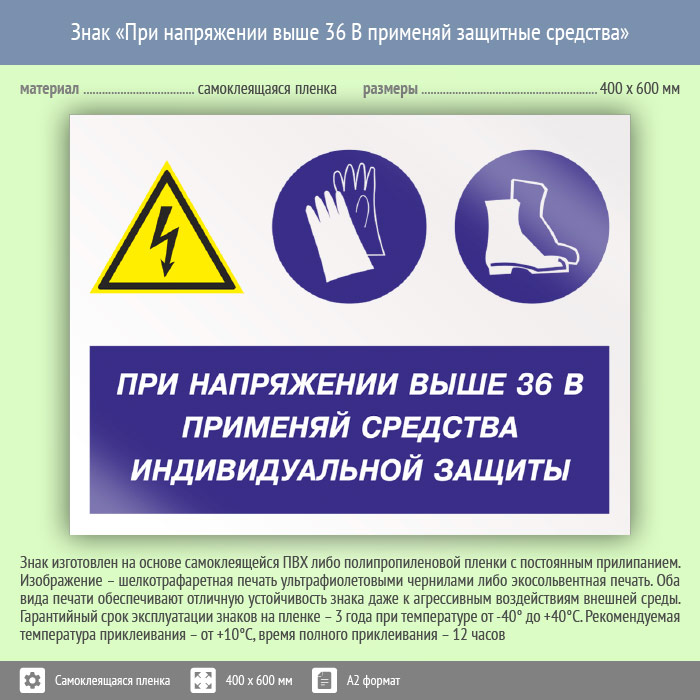 Знак «При напряжении выше 36 В применяй защитные средства», КЗ-71 (пленка, 600х400 мм) в Верее купить