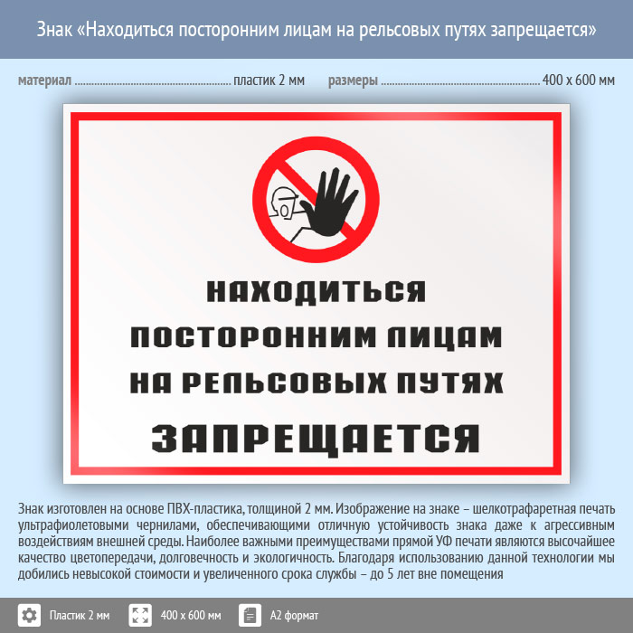 Знак «Находиться посторонним лицам на рельсовых путях запрещается», КЗ-25 (пластик, 600х400 мм) в Верее купить