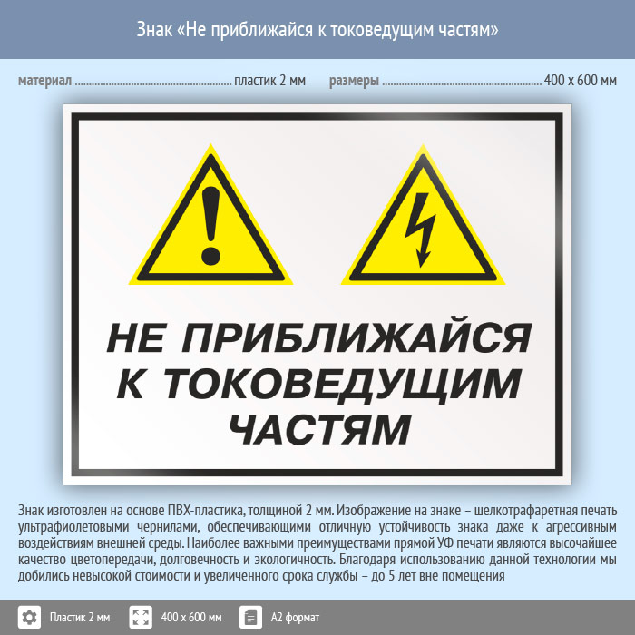 Знак «Не приближайся к токоведущим частям», КЗ-29 (пластик, 600х400 мм) в Верее купить