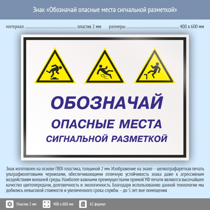 Знак «Обозначай опасные места сигнальной разметкой», КЗ-30 (пластик, 600х400 мм) в Верее купить