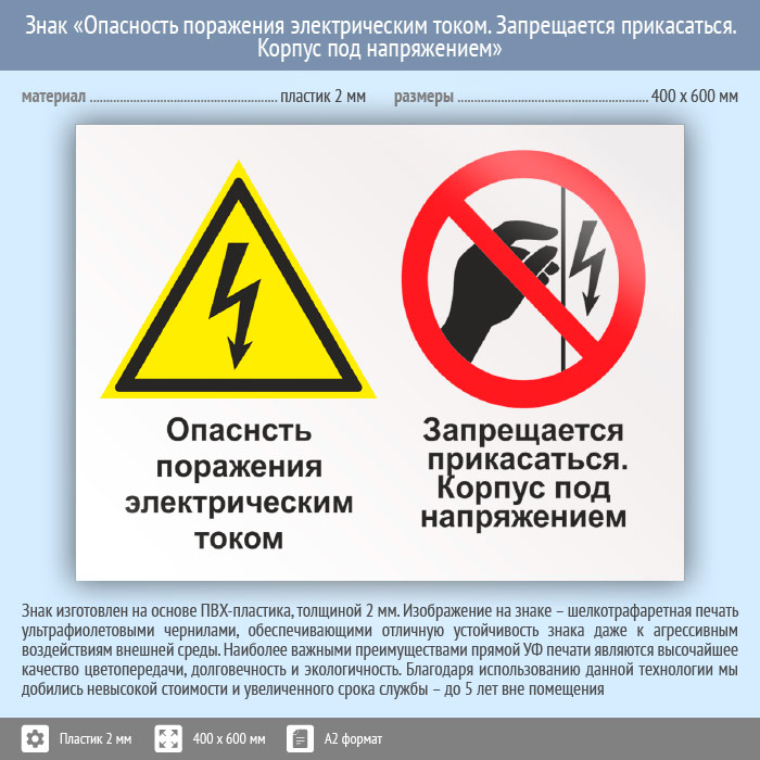 Знак «Опасность поражения электрическим током. Запрещается прикасаться. Корпус под напряжением», КЗ-47 (пластик, 600х400 мм) в Верее купить