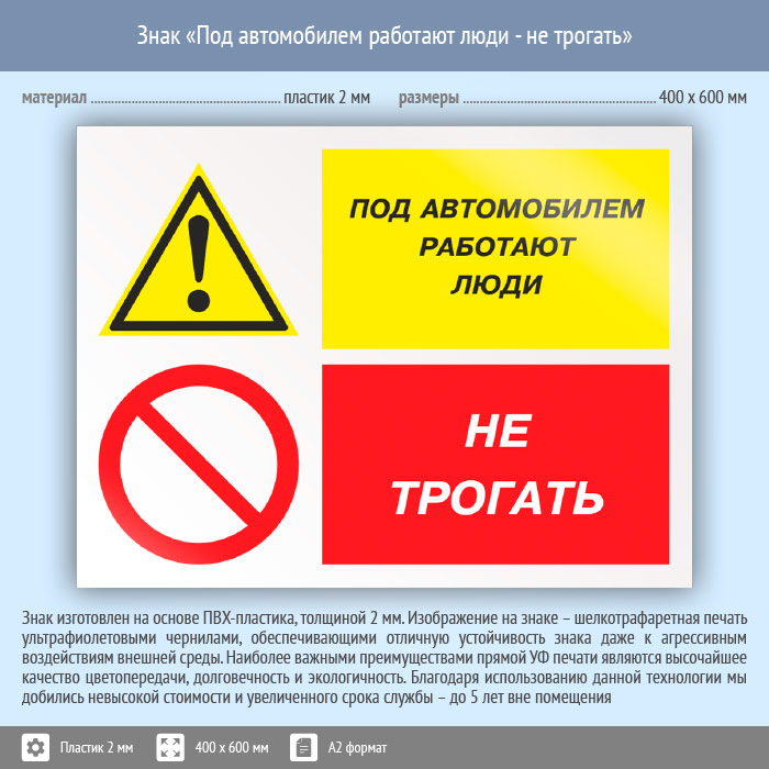 Знак «Под автомобилем работают люди - не трогать», КЗ-66 (пластик, 600х400 мм) в Верее купить