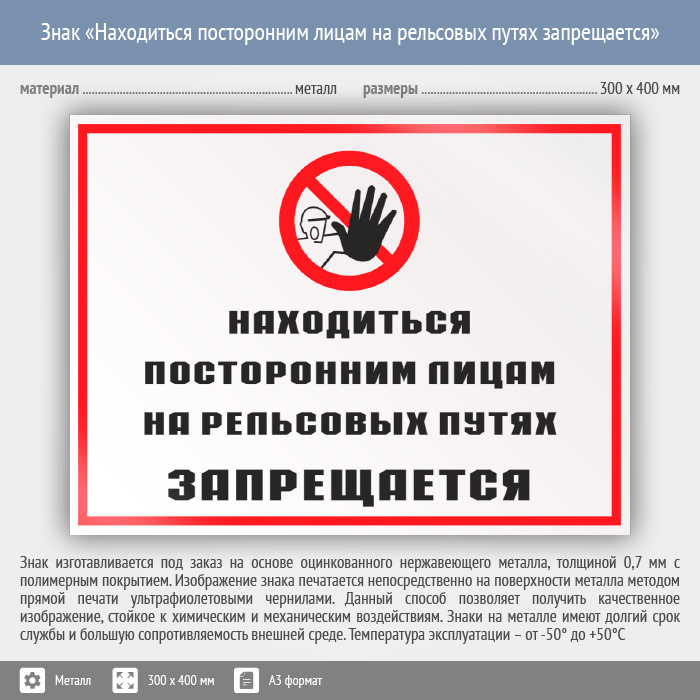 Знак «Находиться посторонним лицам на рельсовых путях запрещается», КЗ-25 (металл, 400х300 мм) в Верее купить
